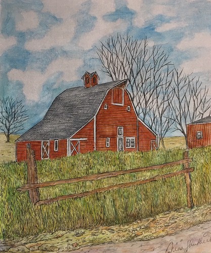 Scenic Barn Small Art Reproduction Artist Ink Realism Architecture Ebay